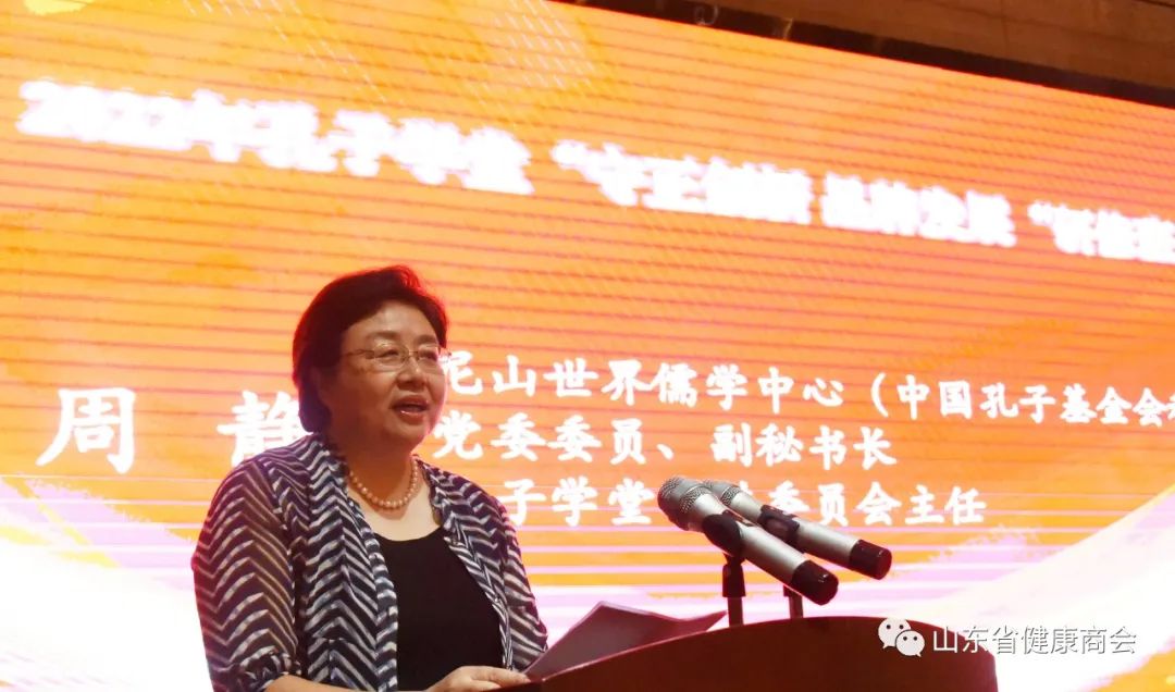 尼山世界儒学中心(中国孔子基金会秘书处)党委委员、副秘书长、孔子学堂推进委员会主任周静,曲阜市政府副市长储艳丽,滕州市文化和旅游局新闻出版广电局文物局局长刘书巨,山东省委党校原副校长李永清,菏泽市原政协副主席孙凤云等领导参加研修班并发表讲话。山东省健康商会顾问、商会孔子学堂校长周卫东与商会副秘书长、商会孔子学堂常务副校长刘译代表山东省健康商会参加本次研修班。