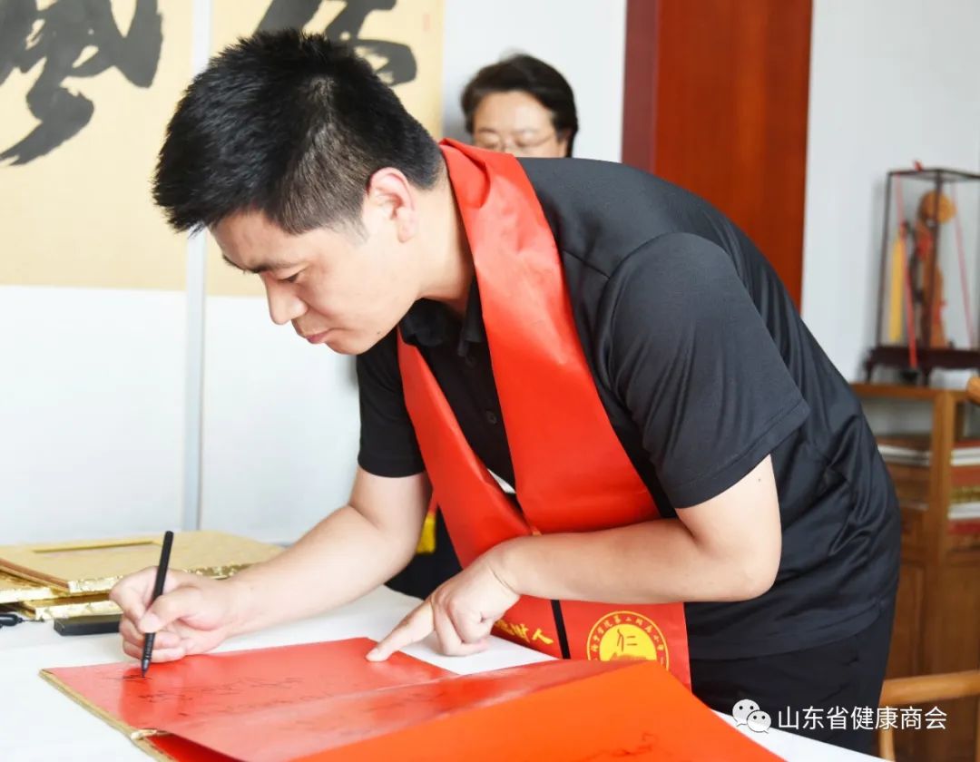研修班开班仪式由尼山世界儒学中心(中国孔子基金会秘书处)党委委员、副秘书长、孔子学堂推进委员会主任周静发表欢迎致辞,并正式对以山东省健康商会为代表的新办孔子学堂进行授牌,商会副秘书长、商会孔子学堂常务副校长刘译代表商会领取孔子学堂牌匾并合影留念。